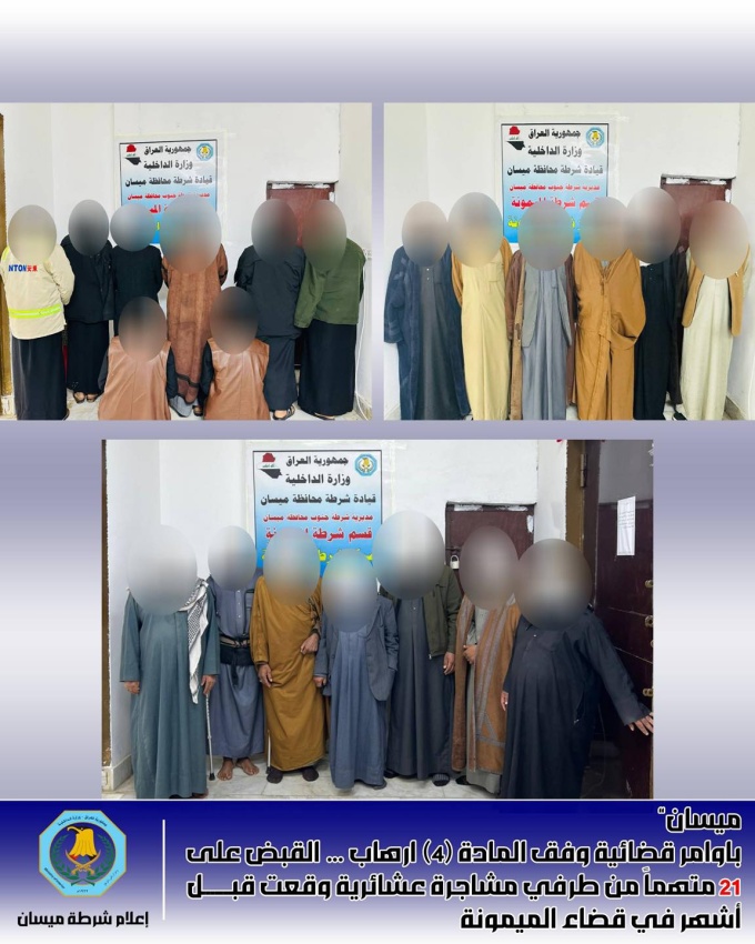 شرطة ميسان: القبض على 21 متهماً بالإرهاب