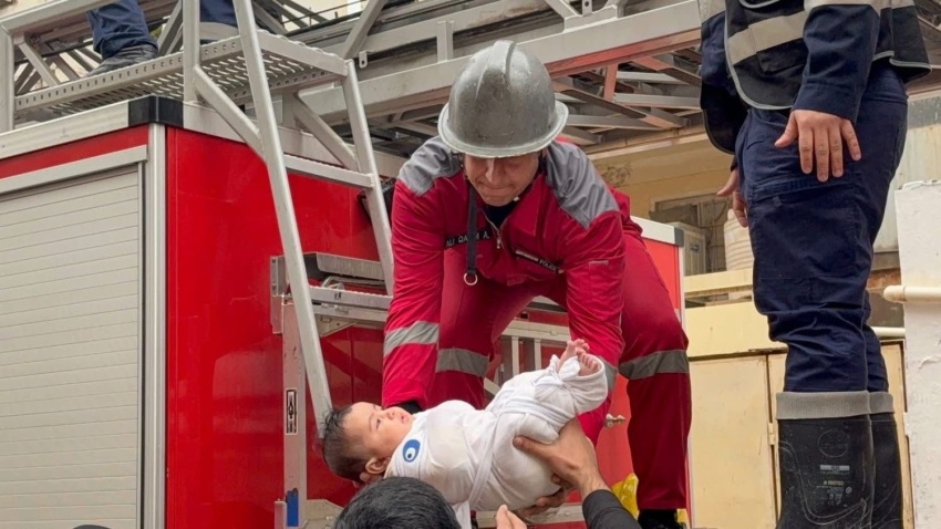 الدفاع المدني في كربلاء ينقذ عوائل إثر انهيار شقق سكنية بسبب الأمطار