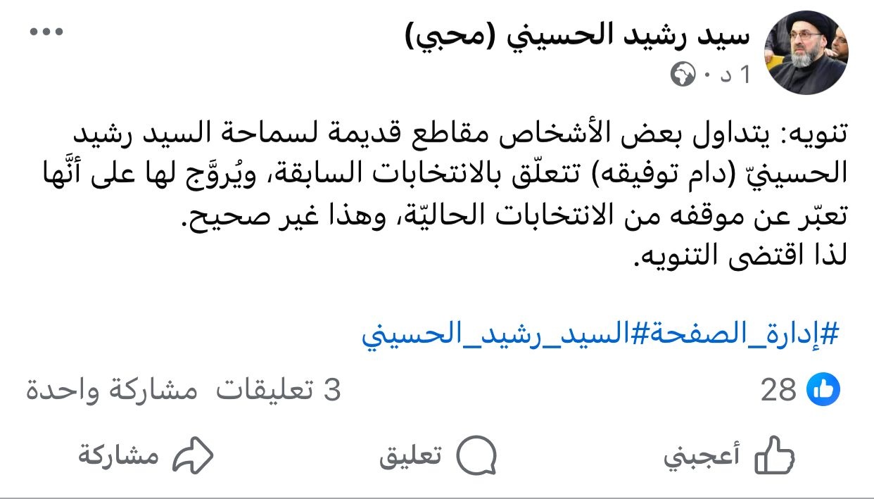 نفى مكتب السيد رشيد الحسيني، اليوم السبت (11 تشرين الأول 2025)، صدور أي توجيهات أو مواقف جديدة تتعلق بالانتخابات البرلمانية المقبلة.