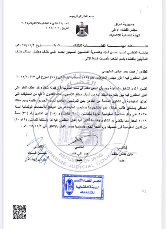 وبحسب وثيقة صادرة عن المجلس حصلت عليها "بغداد اليوم"، اليوم الأحد (2 تشرين الثاني 2025)، فإنه بعد أن ردت المفوضية الشكوى المقدمة من هيبت الحلبوسي ضد وزير التربية إبراهيم النامس، جاء اليوم قرار القضاء العراقي بردّ الدعوى الثانية، مؤكداً سلامة موقف الوزير ومتانة الأسس القانونية التي يستند إليها.