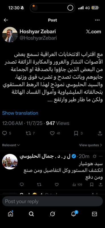 وجه القيادي في الحزب الديمقراطي الكردستاني ووزير الخارجية الأسبق هوشيار زيباري، الخميس (6 تشرين الثاني 2025)، انتقادا حادا لرئيس حزب "تقدم" محمد الحلبوسي، على ما وصفه مراقبون بـ"الغرور السياسي والتكبر على الشركاء الوطنيين" مع اقتراب موعد الانتخابات.
