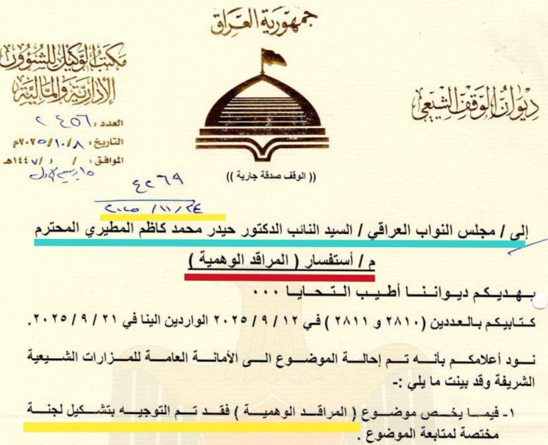 وجاء اعلان الوقف الشيعي رداً على طلب برلماني، تلقته "بغداد اليوم".
