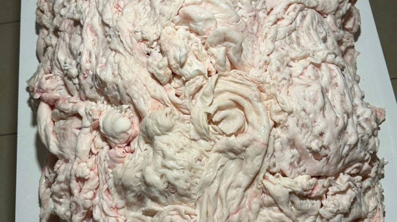 أنجزت الفنانة الشابة بروشة ئاراس طاهر، الطالبة في كلية الفنون الجميلة بجامعة السليمانية، اليوم الإثنين، ( 16 شباط 2026 )، مشروعاً فنياً فريداً استخدمت فيه 60 كيلوغراماً من مادة "الدهون" كمادة أساسية لعملها الإبداعي.