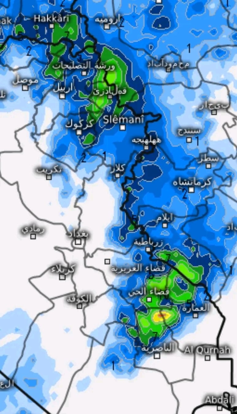 وكتب عطية تعليقاً على خريطة نشرها على مواقع التواصل الاجتماعي وتابعتها "بغداد اليوم"، إن "المناطق المؤشرة باللون الاخضر والاصفر عليها الحذر من أشتداد الامطار مساء اليوم والليلة".