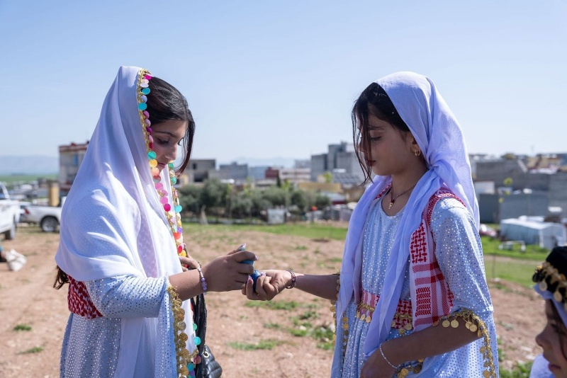 وتشمل طقوس العيد، التي تقتصر هذا العام على الممارسات الفردية والمنزلية، تلوين البيض المسلوق الذي يرمز إلى كروية الأرض وتجمدها وتفتح الطبيعة، وتزيين مداخل البيوت بشقائق النعمان وقشور البيض، فضلاً عن التقليد السنوي بإيقاد 365 قنديلاً في معبد لالش ترمز لأيام السنة، وهو ما جرت عليه العادة في السنوات السابقة.