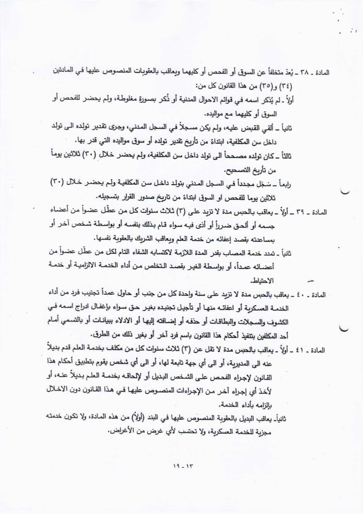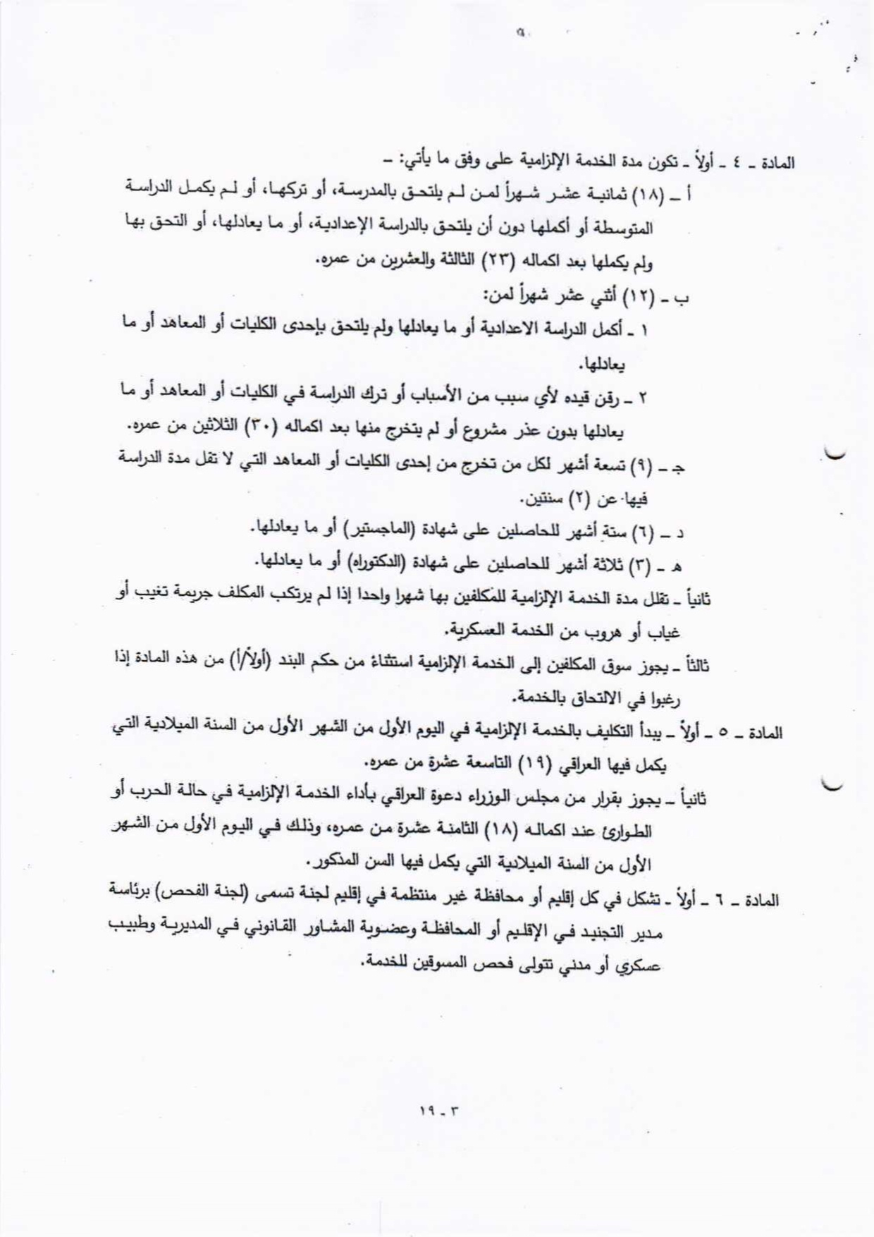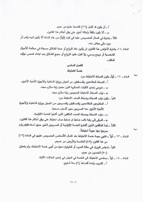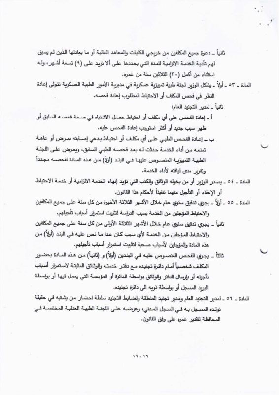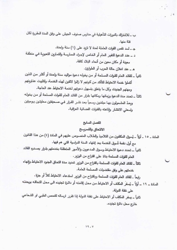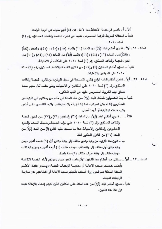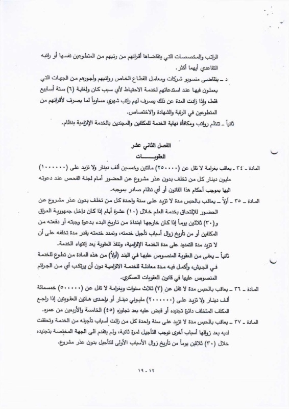 تنشر "بغداد اليوم"، اليوم الأحد ( 19 نيسان 2026 )، النص الكامل لمقترح قانون خدمة العلم الجديد، الذي أُدرج ضمن أعمال مجلس النواب، والمتضمن إعادة تنظيم آليات الخدمة الإلزامية للمواطنين ضمن فئات عمرية محددة، وبما ينسجم مع متطلبات المؤسسة العسكرية والظروف الأمنية في البلاد.