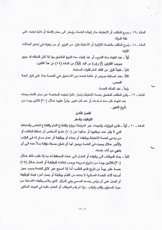 وبحسب النص المقترح، فإن مشروع القانون يهدف إلى إعادة تفعيل نظام خدمة العلم بصيغة حديثة، تتضمن توزيع المكلفين على دورات تدريبية وعسكرية وإدارية، مع مراعاة الاختصاصات الدراسية والاحتياجات الوطنية، إلى جانب وضع ضوابط تتعلق بالإعفاءات المؤقتة والدائمة.